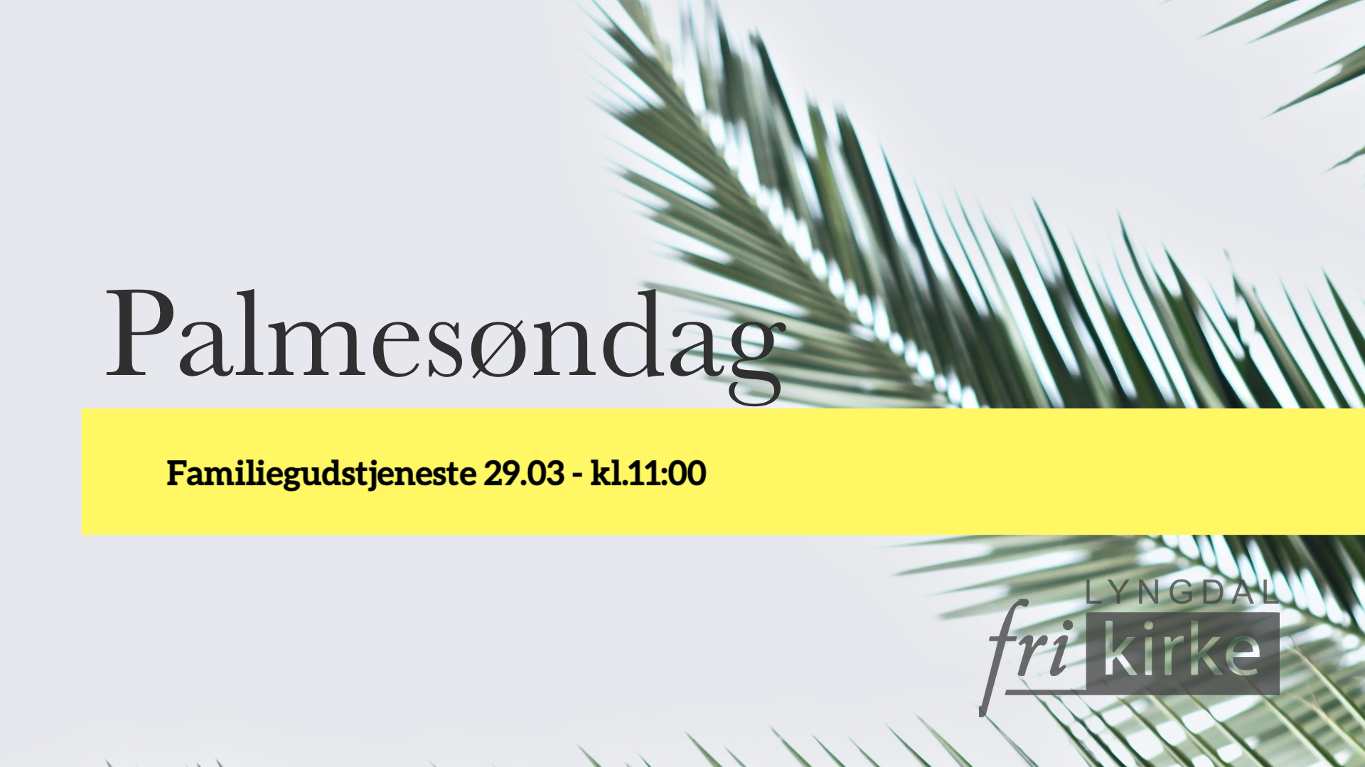Vi oppfordrer alle til å ta med seg “palmegreiner” i kirka. Hvis du ikke har palmer i hagen hjemme, så kan du fint bruke andre planter som tuja eller noe annet. Disse skal vi bruke sammen med barna i prosesjon i starten av gudstjenesten.