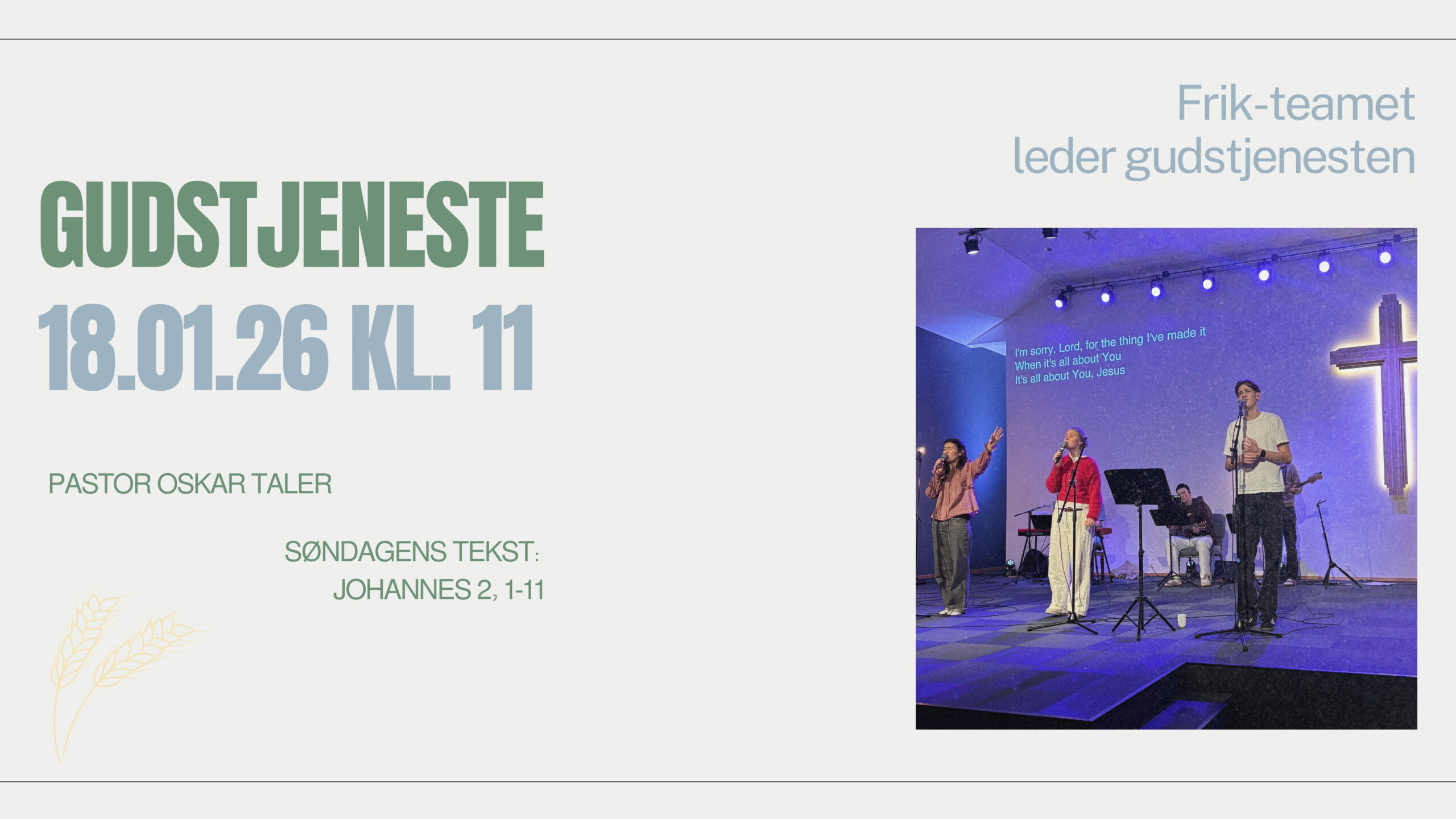 Velkommen FRIK Gudstjeneste. Søndag 18.januar kl.11:00